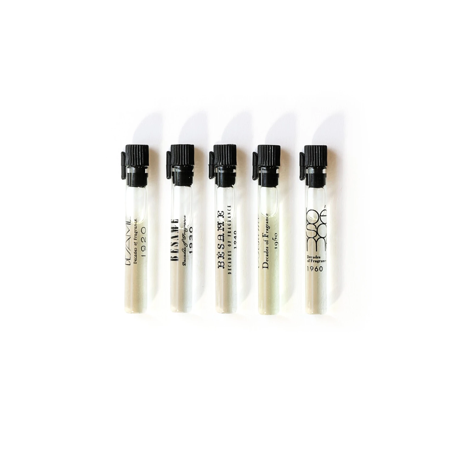 Each 2ml mini tube includes 0.50 ml or more of each different fragrance: 1920, 1930, 1940, 1950 & 1960.